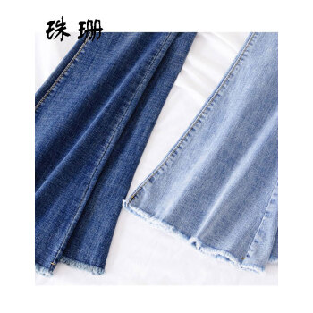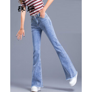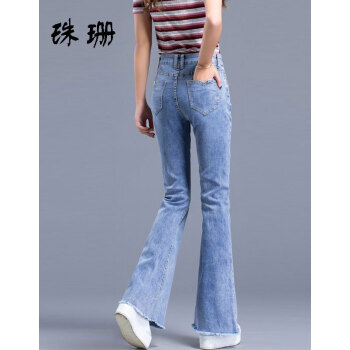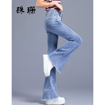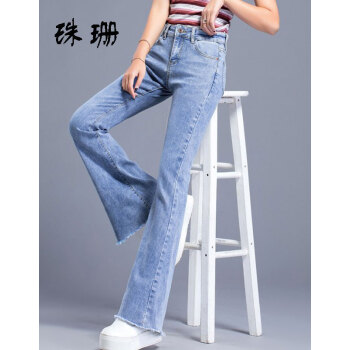 珠珊中高腰牛仔裤女2020春秋新款裤子女装微喇裤拖地裤女长裤大码女装垂感休闲裤女 3799-浅蓝色 29码【110-120斤左右】 |