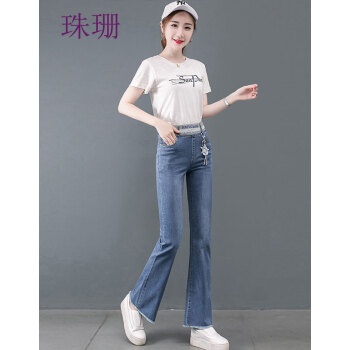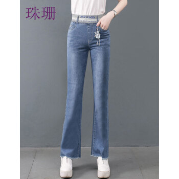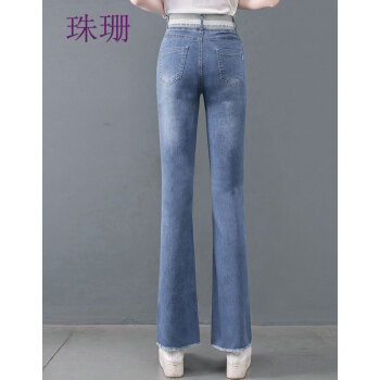 珠珊高腰牛仔裤女2020春秋新款裤子女装阔腿裤拖地裤女长裤直筒裤大码女装垂感休闲裤女 109-蓝色 29码(建议110-120斤左右) |
