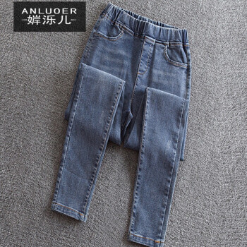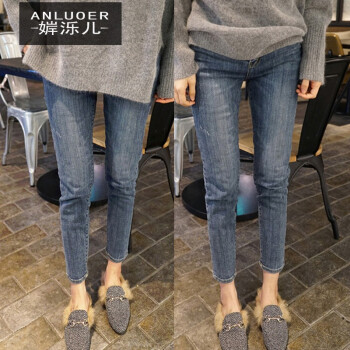 婩泺儿牛仔裤女2020初秋季新款大码女装胖mm弹力牛仔裤九分裤女新款显瘦修身小脚裤女 (高品质蓝色)现货 XL(100-120斤) |