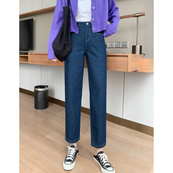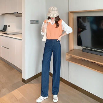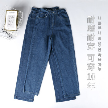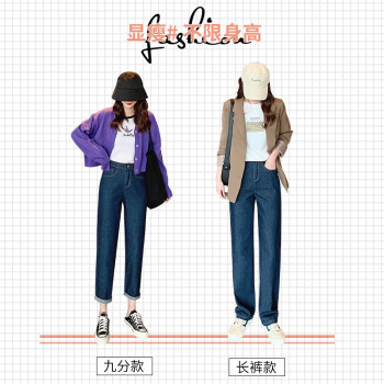 【2件特价】好梦雅 牛仔阔腿裤女春秋季薄2020新款九分宽松垂感高腰显瘦小个子拖地直筒裤 九分款-深蓝色 S【适合80-95斤】 |