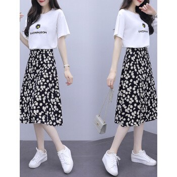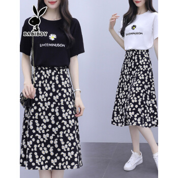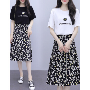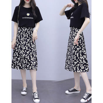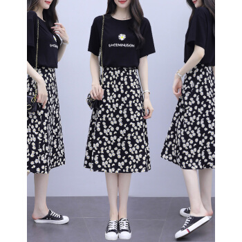 BABIBOY 半身裙套装女2020夏季新款韩版连衣裙中长款两件套套装裙小个子修身显瘦时尚减龄裙子 黑色 M |