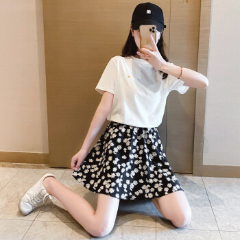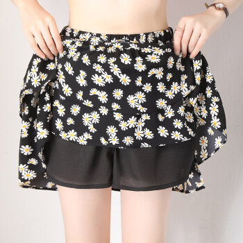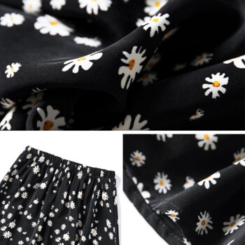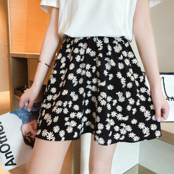浪莎裙子女 女夏季高腰半身裙碎花中裙a字中长款黑色显瘦雪纺小雏菊短裙 短裙 L建议85-120斤 |