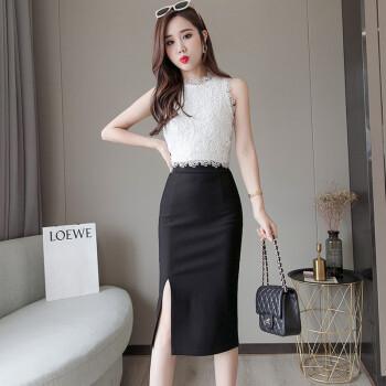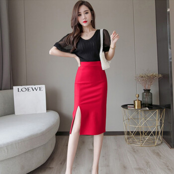 五个橘子半身裙女夏 2020新款女装弹力A字中长款包臀裙开叉黑色紧身显高瘦职业通勤OL上班大码裙子夏 黑色 L |