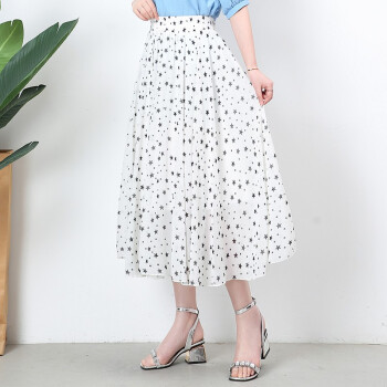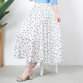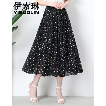 伊索琳星星碎花雪纺2020夏半身裙女中长款夏季高腰不规则荷叶边蛋糕裙中长裙 黑色 均码 80-140斤 |