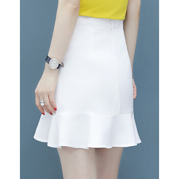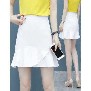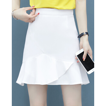 芳帛a字半身裙女2020夏季新款高腰显瘦不规则短裙子百搭韩版荷叶边包臀鱼尾裙 白色 S |