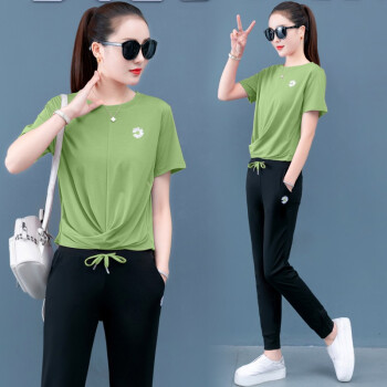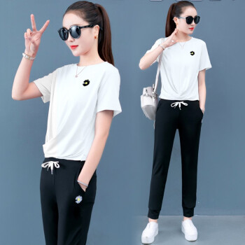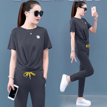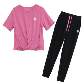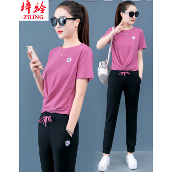 梓龄 休闲运动服套装女2020夏天新款韩版宽松短袖长裤洋气减龄女装休闲裤女两件套 豆沙色 请拍对应尺码 |