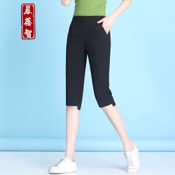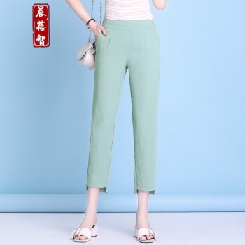 晨蓓智cbz休闲裤女2020新款冰丝棉麻哈伦裤女春夏季薄款九分裤直筒高腰宽松显瘦大码胖MM萝卜裤 黑色九分裤 M【建议90-105斤】 |