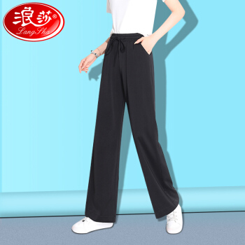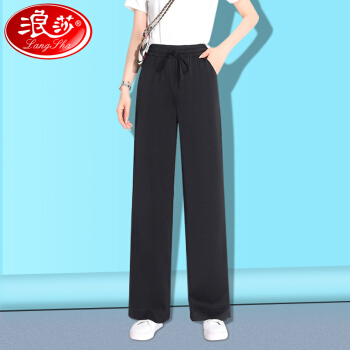 浪莎阔腿裤女高腰垂感夏季女装百搭显瘦休闲云朵裤宽松雪纺拖地裤子女 水墨黑 标准码(80-130斤可穿) |