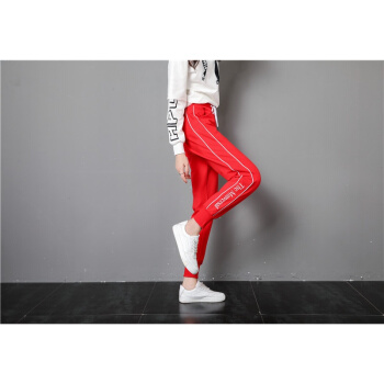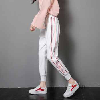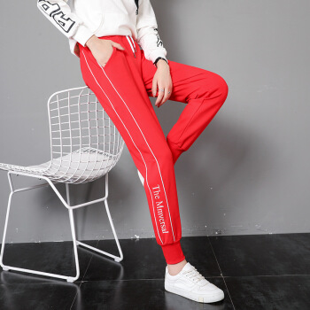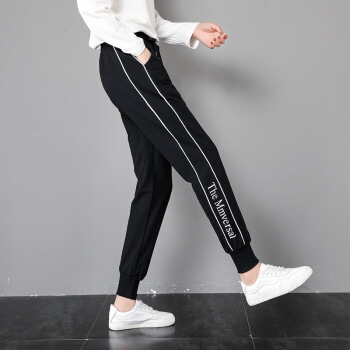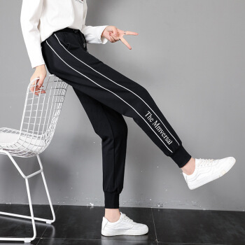莉社运动裤女2020新款学生韩版宽松显瘦休闲裤 黑色长裤 L |