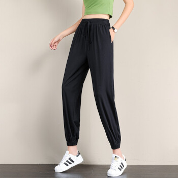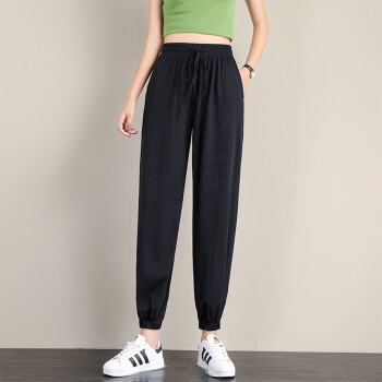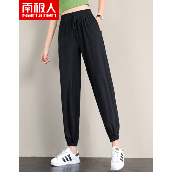 南极人 冰丝运动裤女2020夏季新款宽松束脚薄款卫裤垂感显瘦百搭休闲裤女学生阔腿灯笼裤 黑色 请拍正确尺码 |