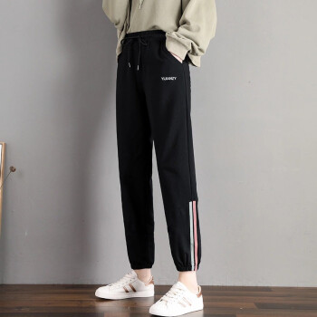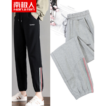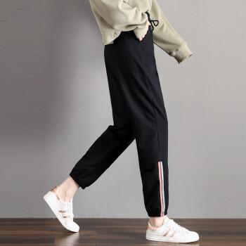 南极人 休闲裤女2020春夏新款时尚大码运动裤女学生宽松韩版显瘦哈伦裤春季束脚百搭裤子 黑色-长裤 请拍正确尺码 |