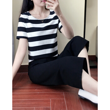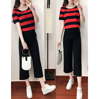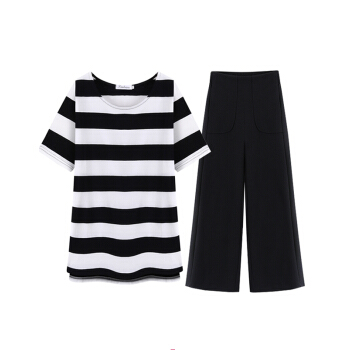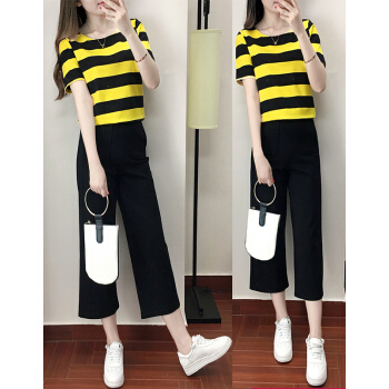 竽妤休闲裤女休闲套装女2020夏季阔腿裤套装女夏装时尚套装新款韩版休闲女夏装两件套洋气套装 黑色条纹 请拍对应尺码 |