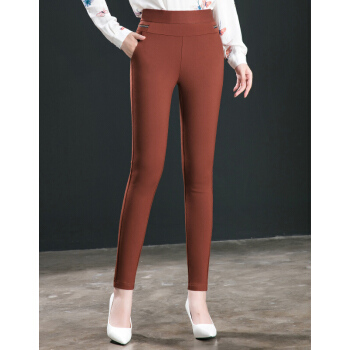 【精选女裤】晞薇休闲裤女裤2020秋季新款韩版大码打底裤外穿高腰显瘦中年妈妈裤焦糖色弹力小脚长裤 焦糖色 M |