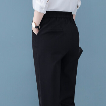 茉玥女裤松紧腰休闲裤女2020夏季薄款气质宽松大码女装小脚裤韩版九分裤女士夏装黑色裤子哈伦裤 黑色 请拍下正确尺码 |