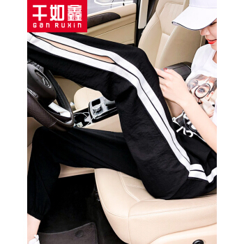 干如鑫休闲裤女运动裤女夏薄款2020新款九分束脚休闲怪味哈伦裤百搭宽松九分灯笼雪纺裤纱显瘦裤子女 黑色 XL(105-120斤) |