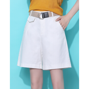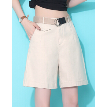 若宸短裤女2020夏季五分裤休闲女式外穿学生高腰阔腿热裤韩版显瘦a字大码女装 米色 L |