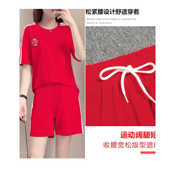 珝嬛短裤女运动套装女夏2020新款时尚宽松韩版减龄遮肚学生短袖t恤热裤跑步两件套大码女装休闲裤女夏潮 红色 此码勿拍.请拍自身对应码数 |
