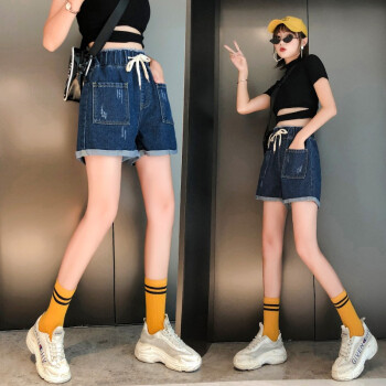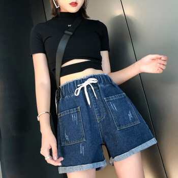 仙器 牛仔短裤女2020夏季新款大码女装高腰宽松百搭热裤 图片色 M |