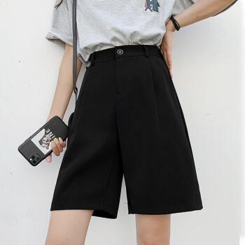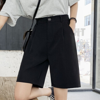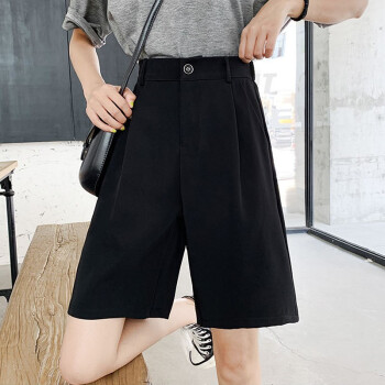 南极人 西装短裤女夏宽松2020新款休闲显瘦黑色直筒雪纺高腰阔腿裤五分减龄中裤 YYR892 黑色-真门襟 请拍正确尺码 |