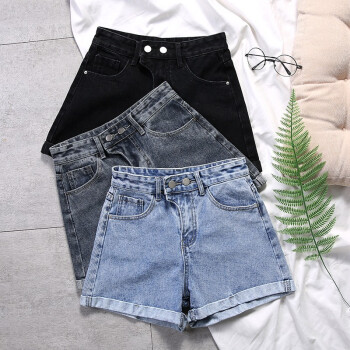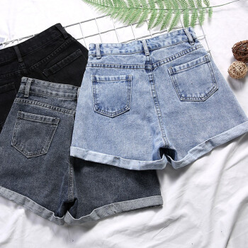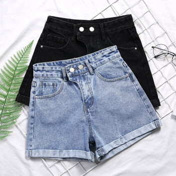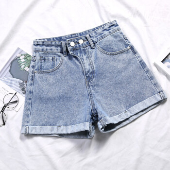 沫澜仟衣牛仔短裤女2020夏季薄款高腰显瘦休闲百搭裤子女潮流时尚女士a字热裤外穿 复古蓝 31码 |