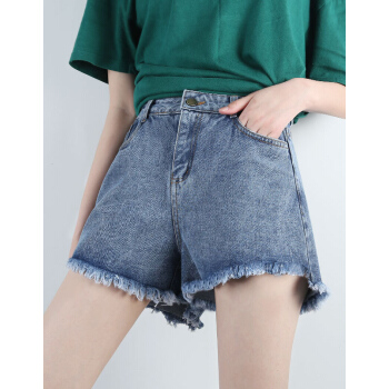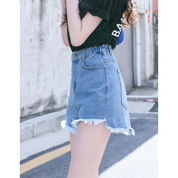 【精选女裤】Hizze 短裤女夏2020新款韩版宽松学生百搭高腰chic白色破洞牛仔裤显瘦减龄热裤潮 【斜边】黑色 请拍正确尺码 |