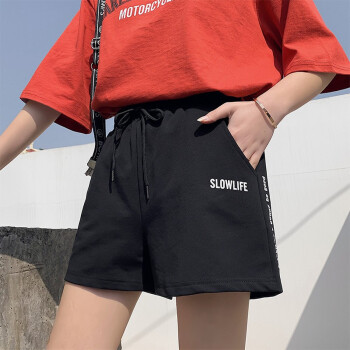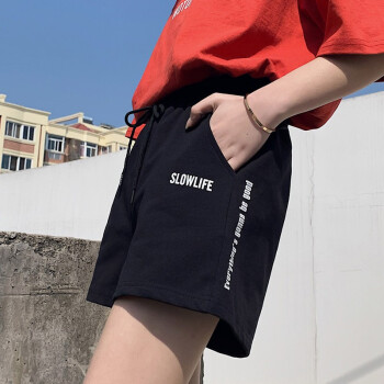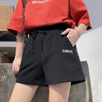 南极人 夏季运动短裤女2020新款外穿棉休闲跑步短裤宽松bf风韩版时尚a字三分热裤 JY49 黑色 请拍正确尺码 |