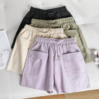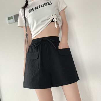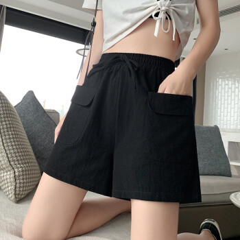 【2条特价】曲诺 2020新款短裤女夏宽松外穿显瘦高腰阔腿黑色运动棉麻休闲大码胖mm 黑色 XL |