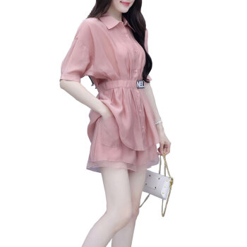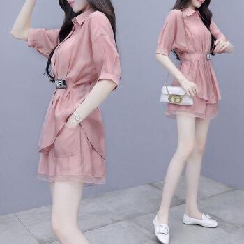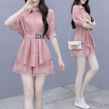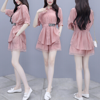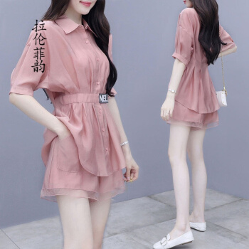 拉伦菲韵 品牌气质女装 棉麻显瘦两件套2020新款夏季休闲时尚短裤套装女洋气粉色减龄 粉色 M |