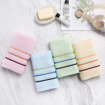 洁丽雅 Grace 纯棉舒适毛巾 多彩洗脸巾柔软吸水全棉情侣洗脸缎档条纹超值毛巾二条装 |