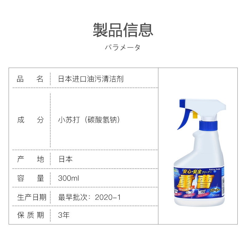 日本进口厨房油烟机清洗剂小苏打喷雾油污清洁剂 |
