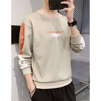 寄风 卫衣男圆领2020年春秋季新款韩版潮流男士长袖T恤春装上衣大码外衣 2008灰色(单件) XL |