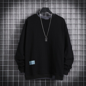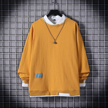 简艾伦 卫衣男T恤男士潮牌ins大码宽松圆领假两件长袖2020春季新款潮流上衣 TBK19209粉红色 XL |