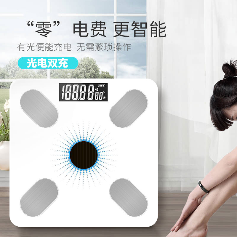 【超值单品】多功能体脂称USB充电太阳能充电两用【钢化玻璃/皓月白】 |