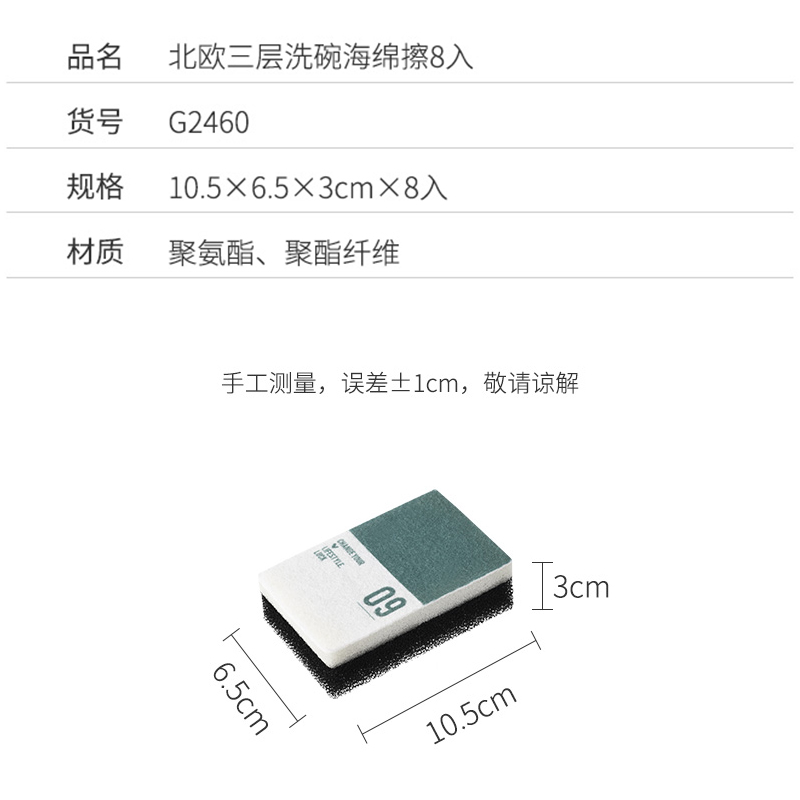 北欧三层洗碗海绵擦8入【聚酯纤维 聚氨酯/图片色】 |