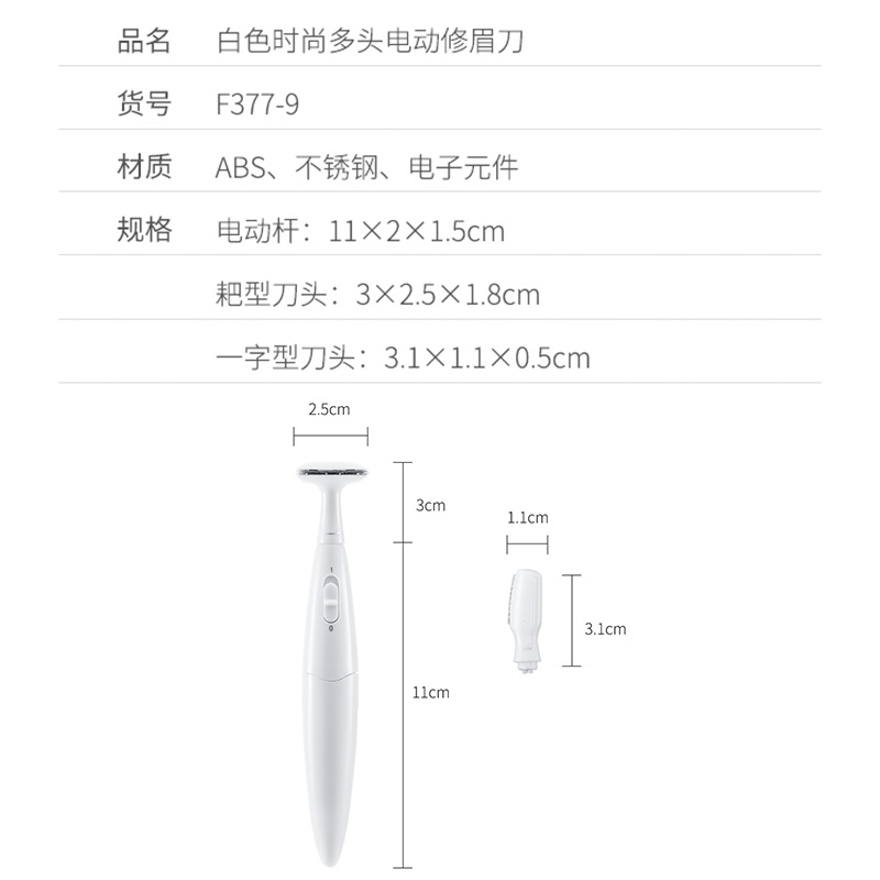 电动修眉刀女士修眉器眉毛腋下剃毛刀除毛器【ABS 不锈钢 电子元件/白色】 |