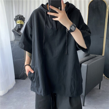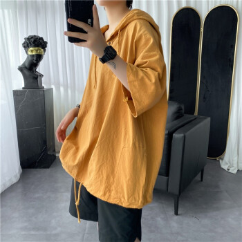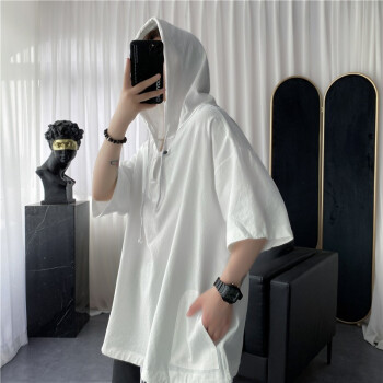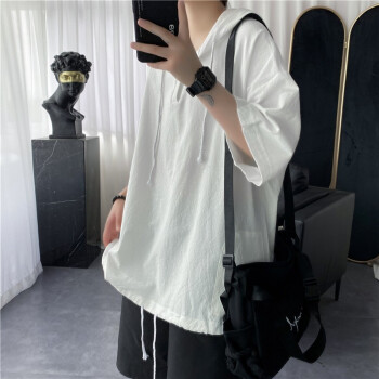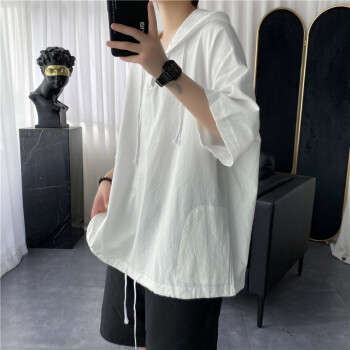 擒旗 卫衣男2020年夏季新款韩版宽松时尚男士连帽短袖卫衣港风薄款青少年百搭潮牌情侣男上衣LZX 白色 M(建议94-110斤) |