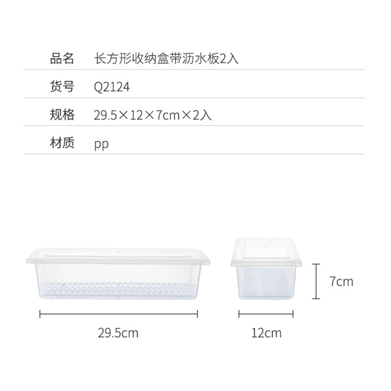 长方形收纳盒带沥水板2入【pp/透明色】 |
