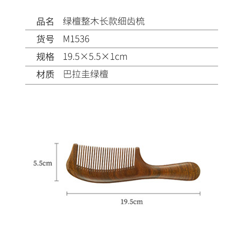 绿檀整木长款细齿梳【巴拉圭绿檀/图片色】 |