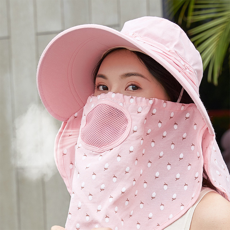 夏日出行360度防晒帽遮脸护颈太阳帽防晒帽【100%聚酯纤维/粉色】 |