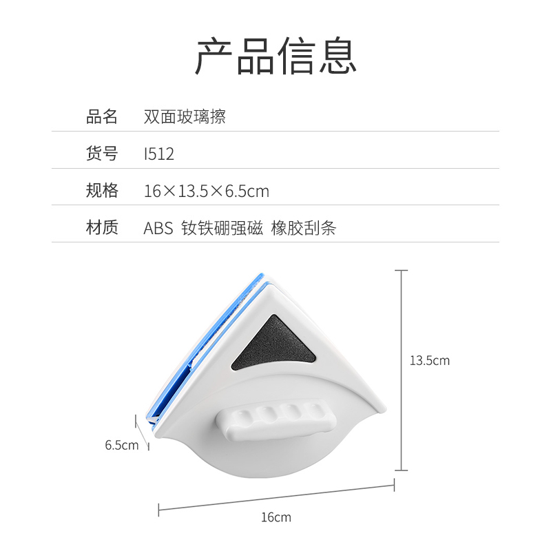 蓝色双面玻璃擦3-8mm【ABS 钕铁硼强磁 橡胶刮条/蓝色】 |