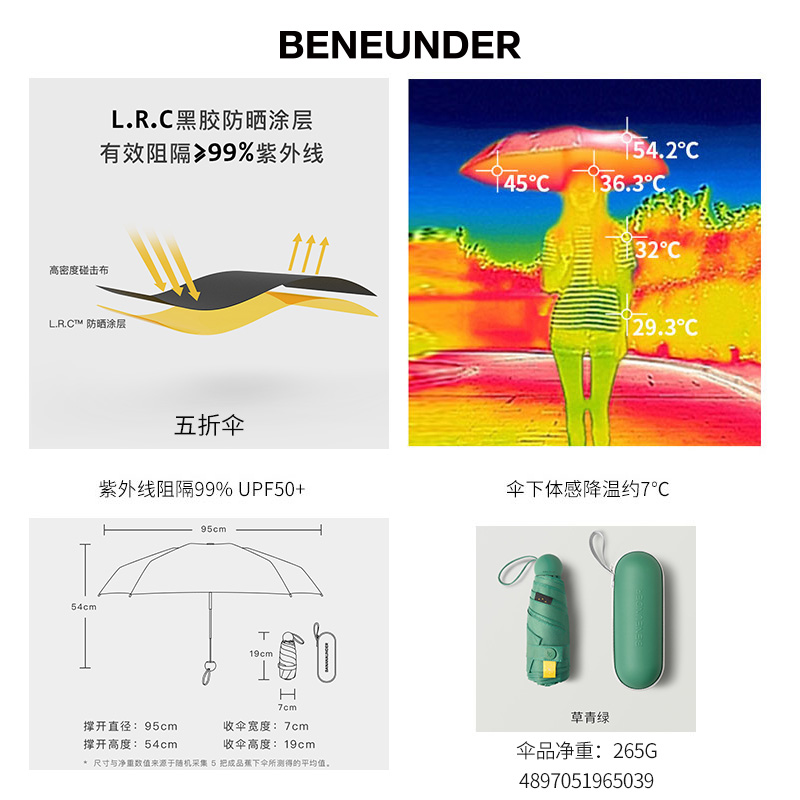 防晒防紫外线女 晴雨伞两用小巧便携遮阳伞【伞布: 聚酯纤维伞杆材质: 铝合金/草青绿】 |