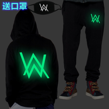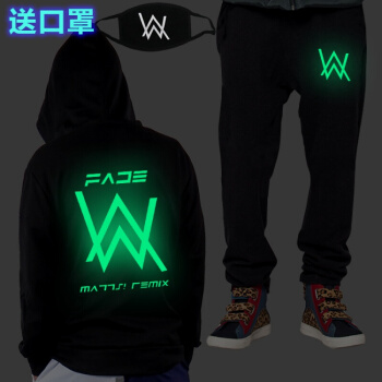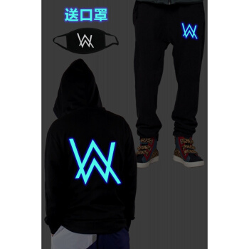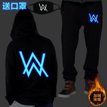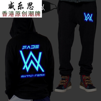威乐思夜光Alan Walker艾伦沃克卫衣裤子套装DJ外套Faded电音衣服男 蓝光英文套装(偏小一码) 2XL |