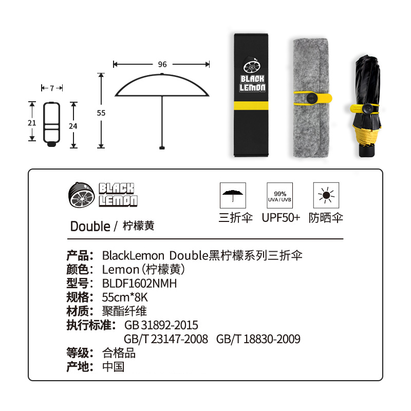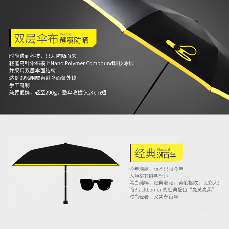 双层防晒防紫外线太阳伞【聚酯纤维/柠檬黄】 |