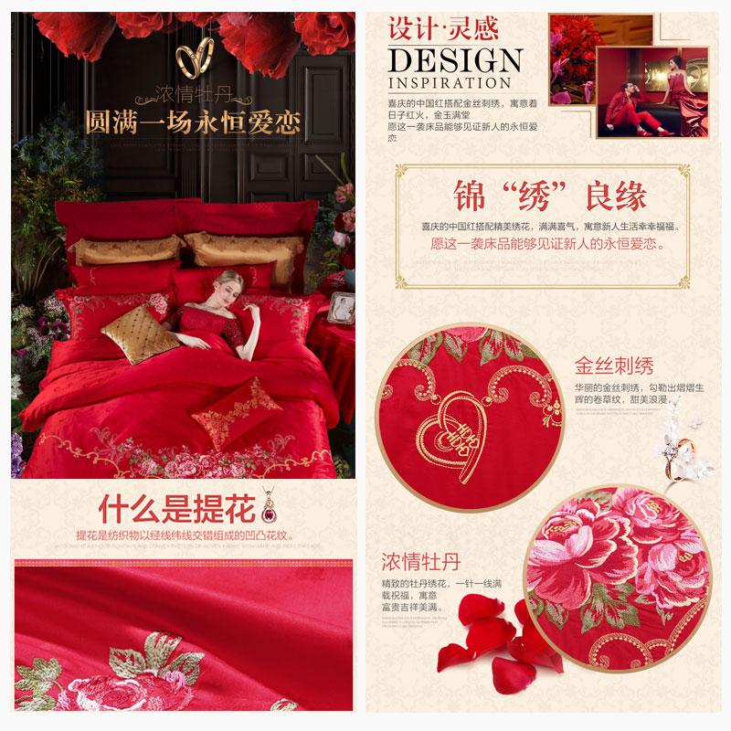 永恒爱恋 床单六件套(被套1件床单1件枕套4件)(适合1.5米床)【纯棉提花/红】 |