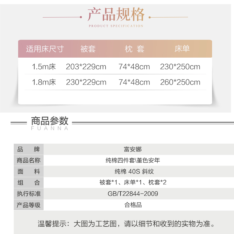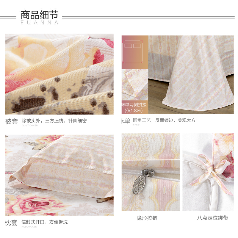 堇色安年 床单四件套(被套1件床单1件枕套2件)(适合1.5米床)【纯棉/粉】 |