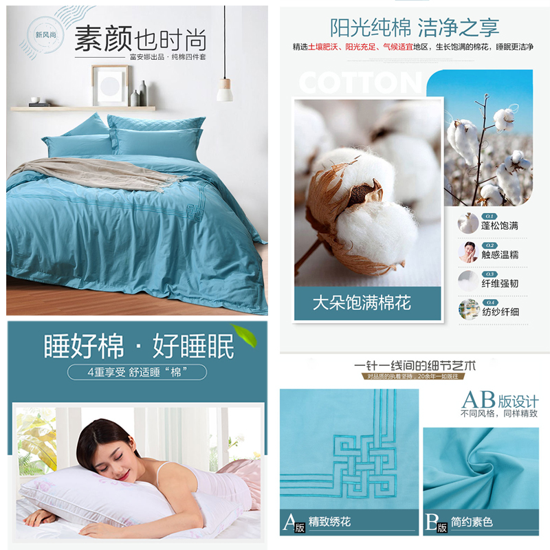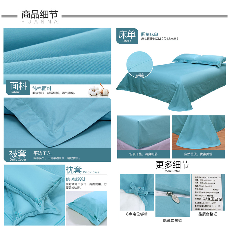 伊人风采 纯棉床单四件套(被套1件床单1件枕套2件)(适合1.8米床)【纯棉/绿】 |