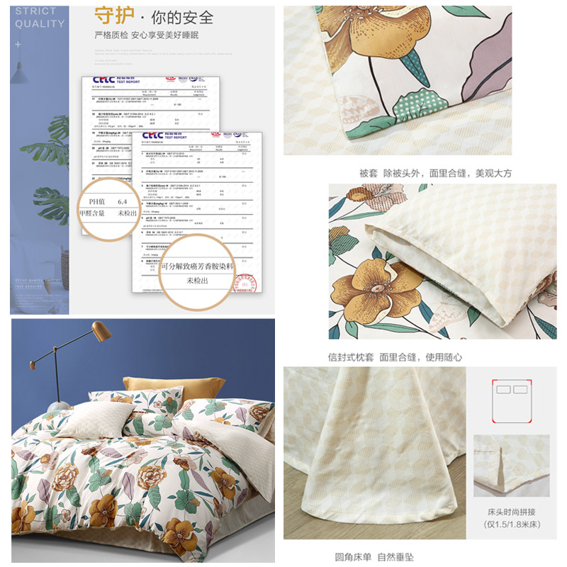 花枝墨染 床单四件套(被套1件床单1件枕套2件)(适合1.5米床)【纯棉/黄】 |