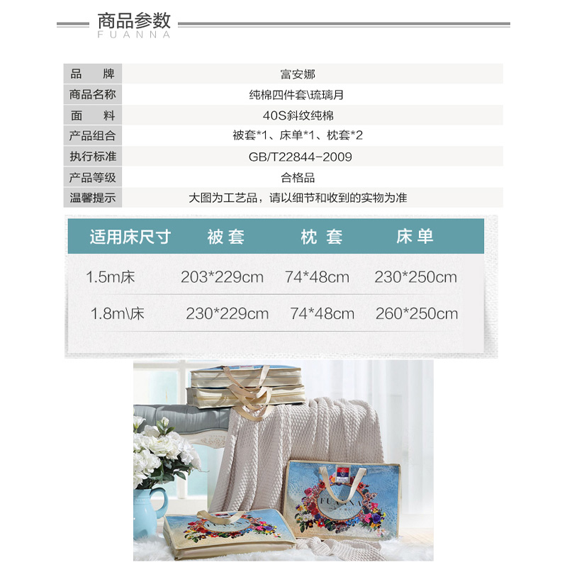 琉璃月 床单四件套(被套1件床单1件枕套2件)(适合1.8米床【纯棉/深绿】 |