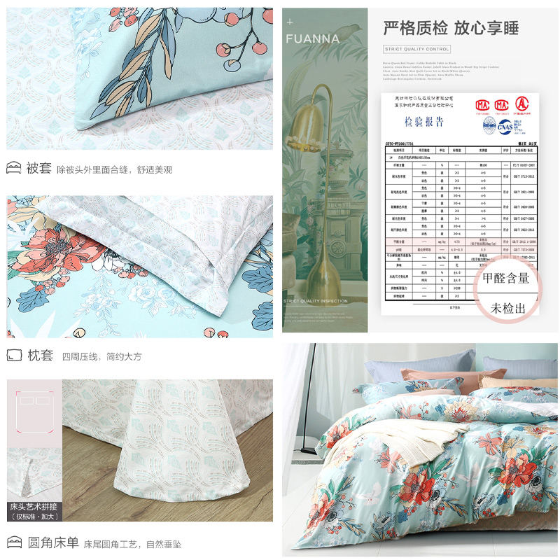 莱茵春色 床单四件套(被套1件床单1件枕套2件)(适合1.5米床)【纯棉/蓝】 |