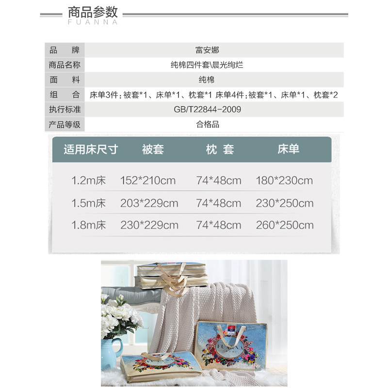 晨光绚烂 床单三件套(被套1件床单1件枕套1件)(适合1.2米床)【纯棉/蓝】 |